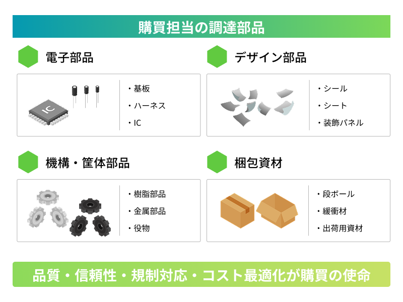 これらの部品は、機構部品と異なり電気的特性や信頼性が製品性能に直結するため、購買担当者は価格や納期だけでなく、技術的要件と法令遵守の両面を把握した上で調達を行う必要があります。
