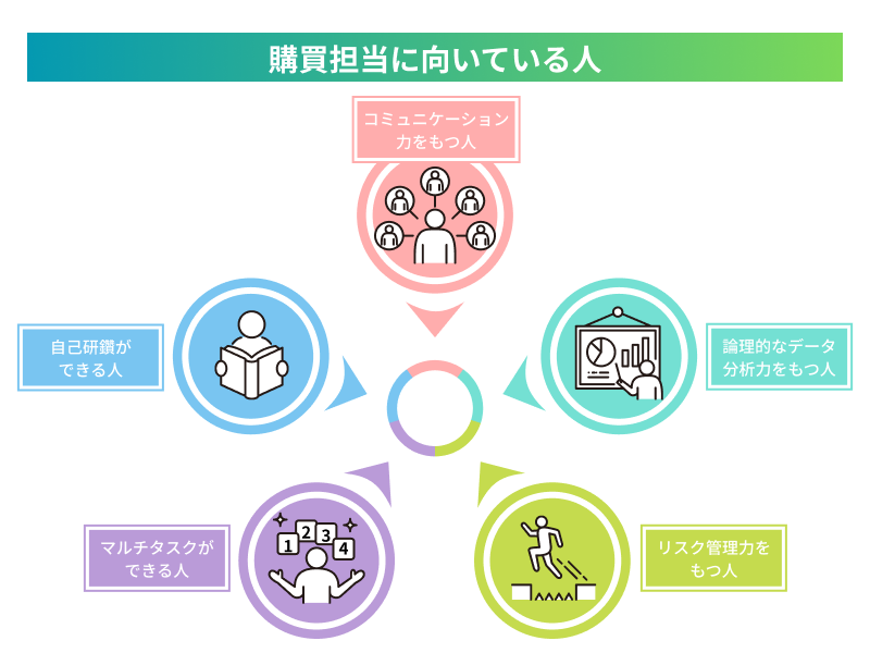 購買担当に向いている人は、交渉や調整が得意で、数字やデータに強く、細部まで注意を払えるタイプです。柔軟な対応力と責任感を持ち、コストや品質を意識しながら最適な判断ができる人が適しています。